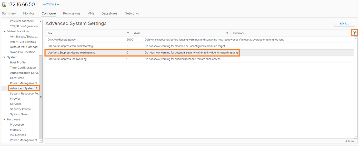 Operacje umożliwiają jedynie wyłączenie opcji Hyper-Threading na Twoich hostach ESXi. Ponieważ jednak podatność L1TF potrzebuje do działania opcji Hyper-Threading, jej wyłączenie chroni Twoją infrastrukturę przed wykorzystaniem podatności.