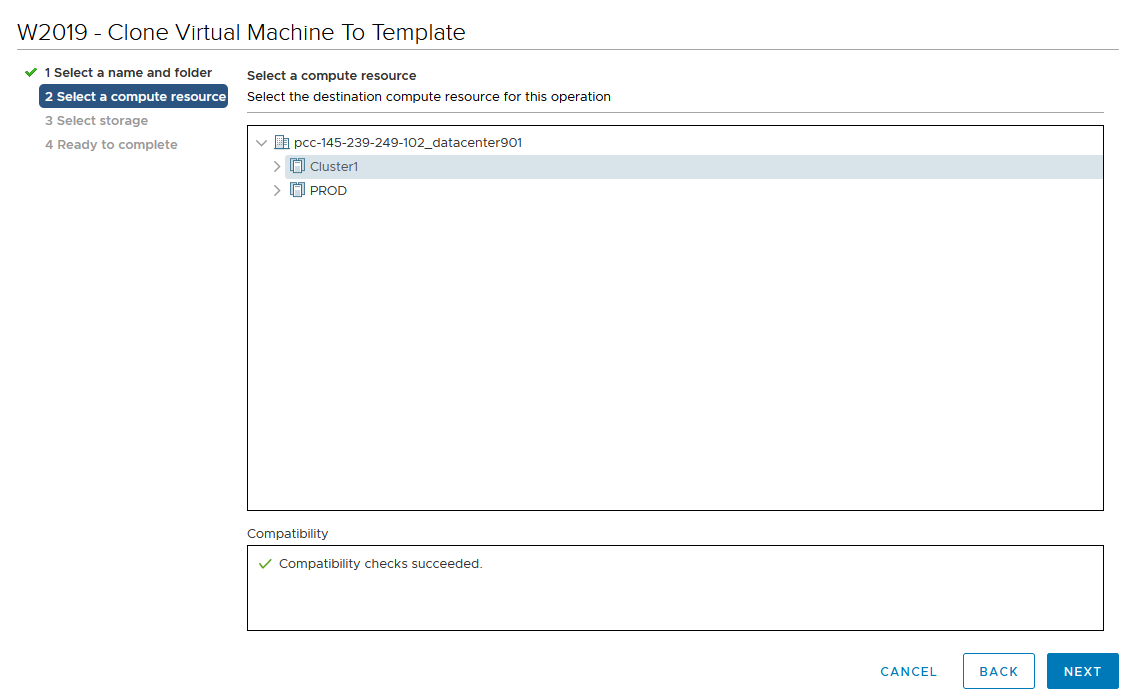 Select the template VM compute location.