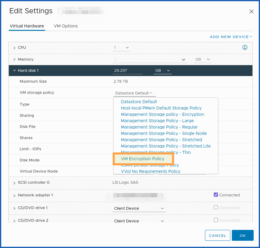 Modify the storage policy of "VM Encryption Storage"
