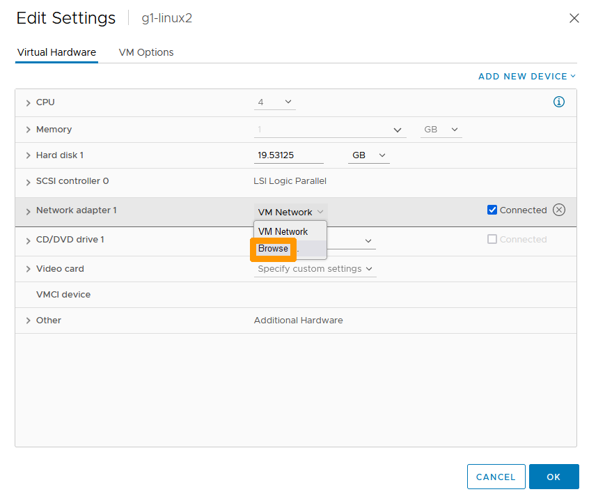 192.168.100.254/24that should match the gateway. - Connected To(Segment) : Take the segment that is on vlan 100 on the vRack named