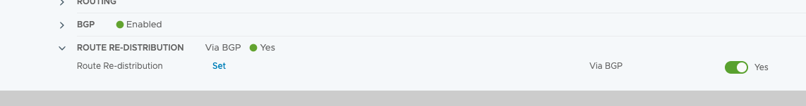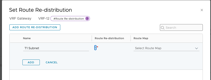 To do this, go to the Route Redistribution section of your VRF (below that of the BGP).