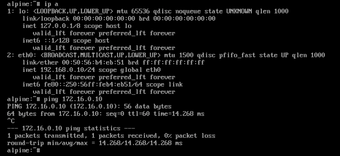 To check that your configurations and link are working properly, perform a ping test between the different virtual machines.
