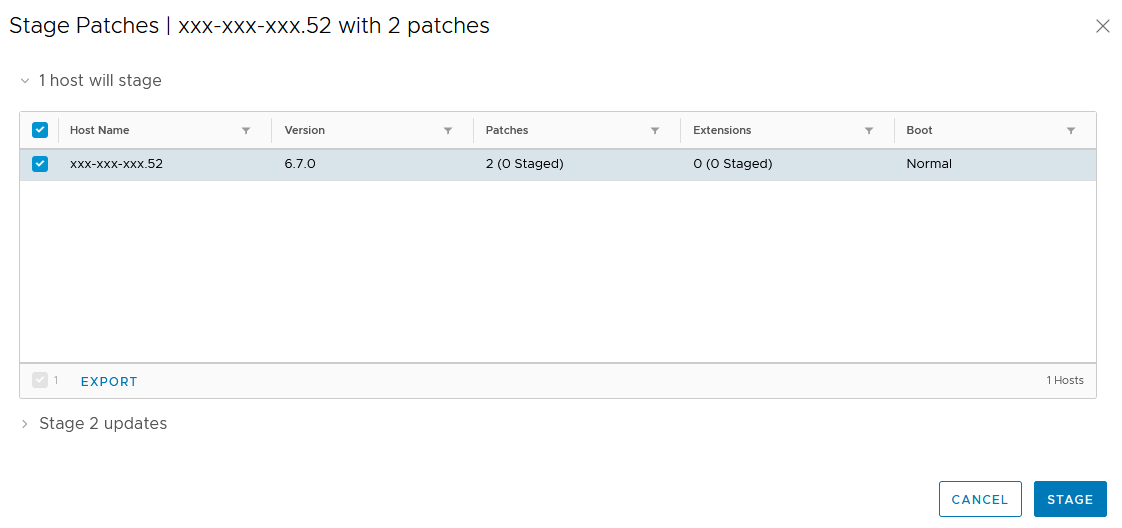 Wybierz host i kliknij ponownie Stage.