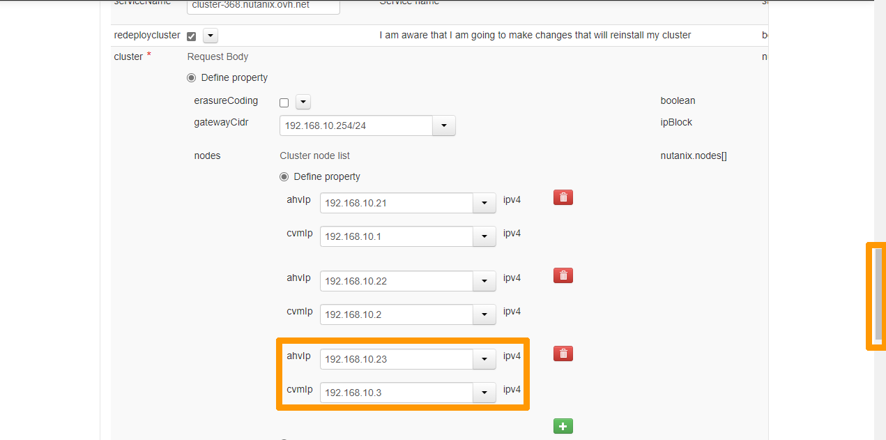 ahvip:IP address of the hypervisor of the last node.