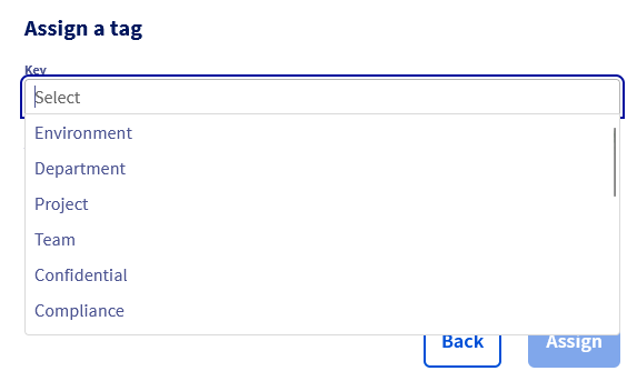 It is possible to either select one or more tags from the list of predefined tags or enter your own tags by typing the keys and values directly into the fields.