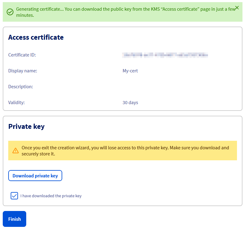 If you do not provide a CSR, OVHcloud will generate the access certificate along with a private key.