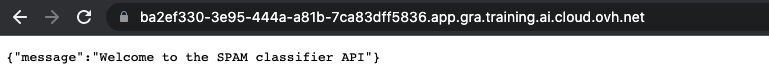 In our example, the url is as follows: https://ba2ef330-3e95-444a-a81b-7ca83dff5836.app.gra.ai.cloud.ovh.net/docs