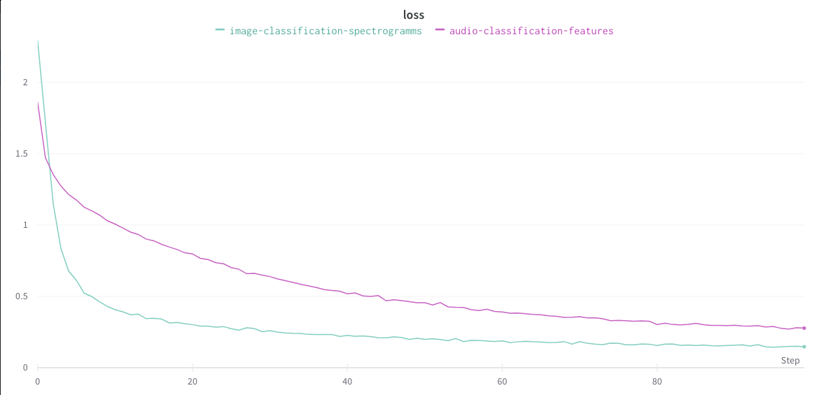 The purpose of this tutorial is to compare two methods by running two jobs in parallel in order to classify audios. To see which model is better in terms of accuracy, resource consumption and training time, we will use the Weights & Biases tool.