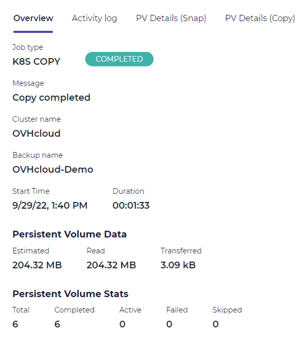 In this quick start guide you will learn how to deploy CloudCasa to your OVHcloud Managed Kubernetes cluster, create backup policies, define schedules, run backups and run restores.