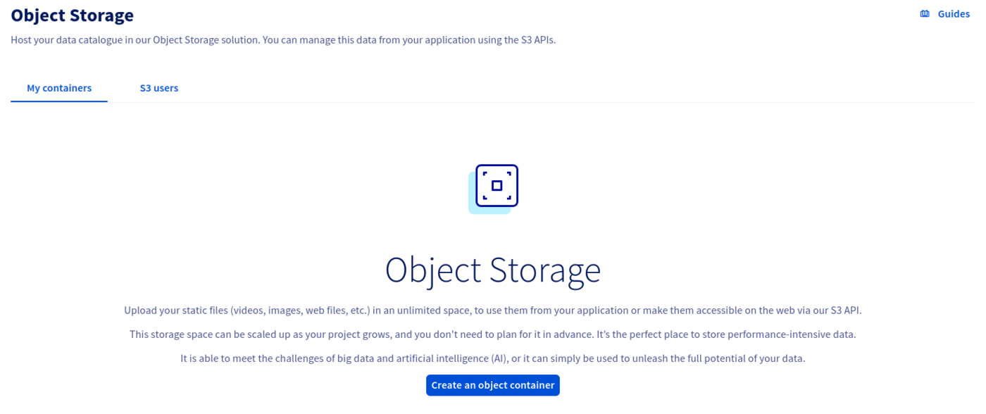 The Object Storage solution for Public Cloud offers an unlimited storage solution with simple billing tailored to your needs. There are many types of object containers: