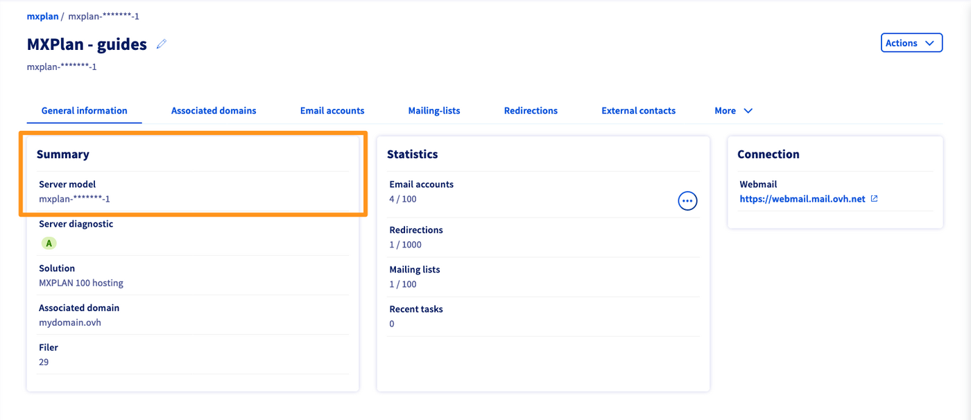 Posiadanie wcześniej skonfigurowanego rozwiązania poczty elektronicznej OVHcloud (MX Plan, zaproponowanego w naszej ofercie hostingu, zawartego w Darmowy hosting 100M lub zamówionym oddzielnie jako rozwiązanie autonomiczne, takie jak Hosted Exchange lub Email Pro)