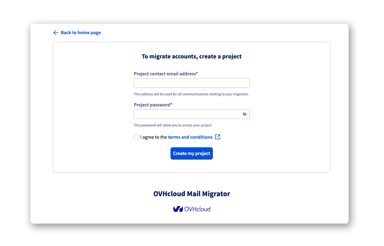 Przed rozpoczęciem migracji konieczne jest utworzenie projektu. Ten projekt pozwoli Ci rozpocząć jedną lub więcej migracji i śledzić je.