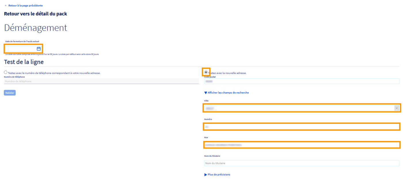 Cette étape n'apparaît que si la création d'une nouvelle ligne est demandée à la nouvelle adresse ou lors de l'installation d'un abonnement Fibre.