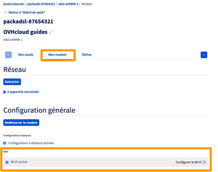 Pour accéder à la configuration de votre réseau Wi-Fi OVHcloud, suivez ces étapes :
