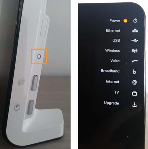 Durant la réinitialisation, le voyant Power sera orange et clignotera sur la box TG788vn V2 ; il sera vert sur la box TG788vn.