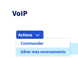 Cliquez sur le bouton Actions puis sur Gérer mes reversements.