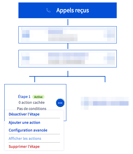 Les actions ajoutées à une étape s'activent lorsqu'un appelant contacte votre numéro.