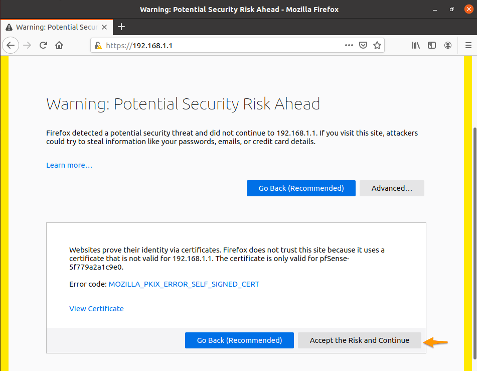Open a web browser and enter 192.168.1.1 into the URL, there will be a security warning about the interface but it's not something to be concerned about. Be sure to open advanced select Accept and Continue.