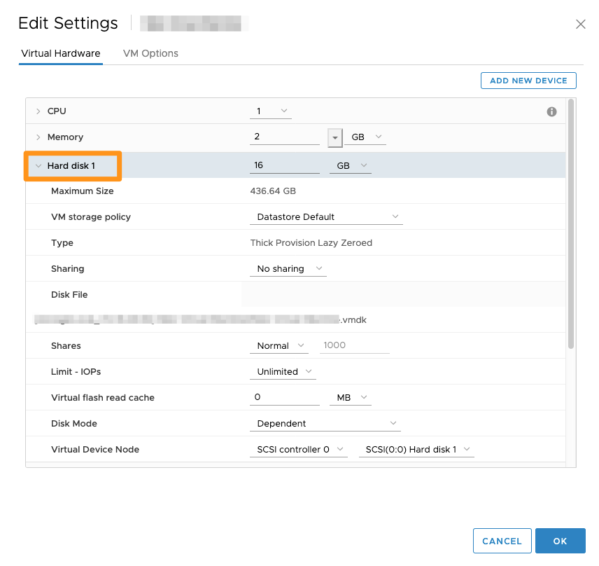 No que diz respeito ao disco rígido, pode aumentar o seu tamanho em função do espaço restante no datastore que a máquina virtual utiliza.