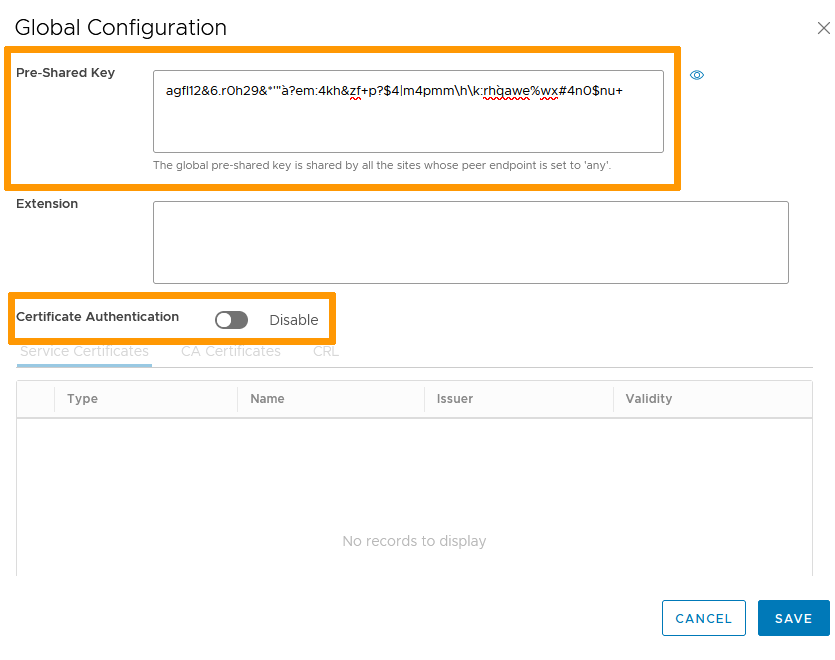 • Peer Endpoint default value is "any" but can be changed to an IP or FQDN. If you retain the default value, the Global PSK must be set.