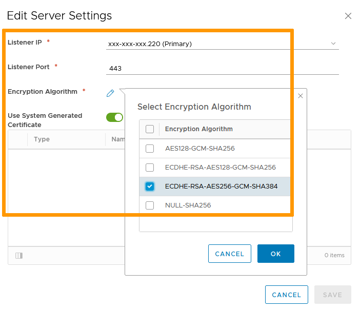 • Listener IP is the Public IP of the NSX Edge Gateway you will use.