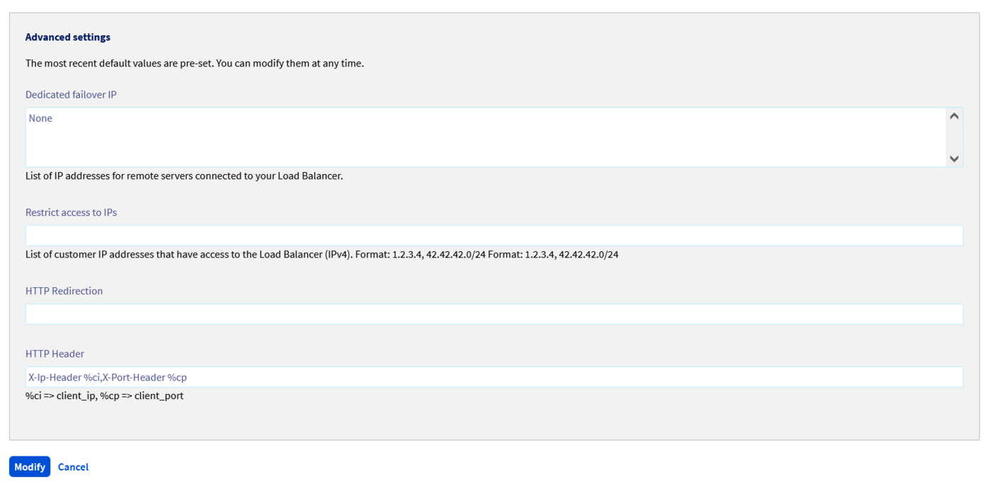 Configuration of an OVHcloud Load Balancer service - HTTP headers