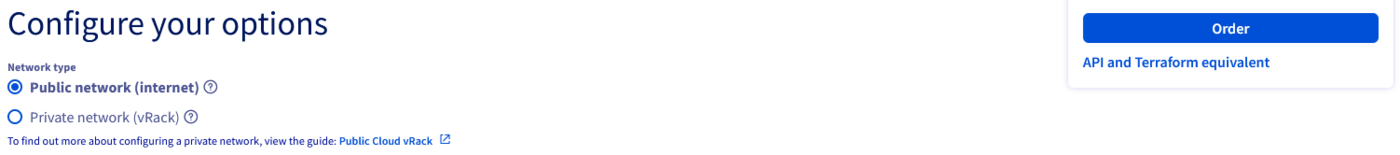 If you already have a private subnet available, check the box Private and select it from the drop-down menu. Note that this option might not be available for the selected service type.