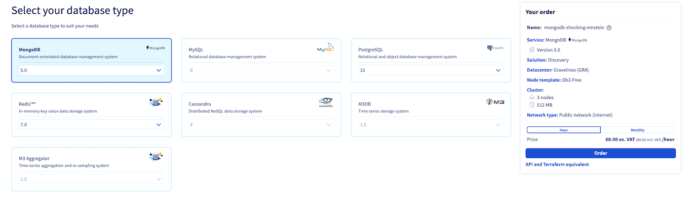 This guide explains how to order a database solution in the OVHcloud Control Panel.
