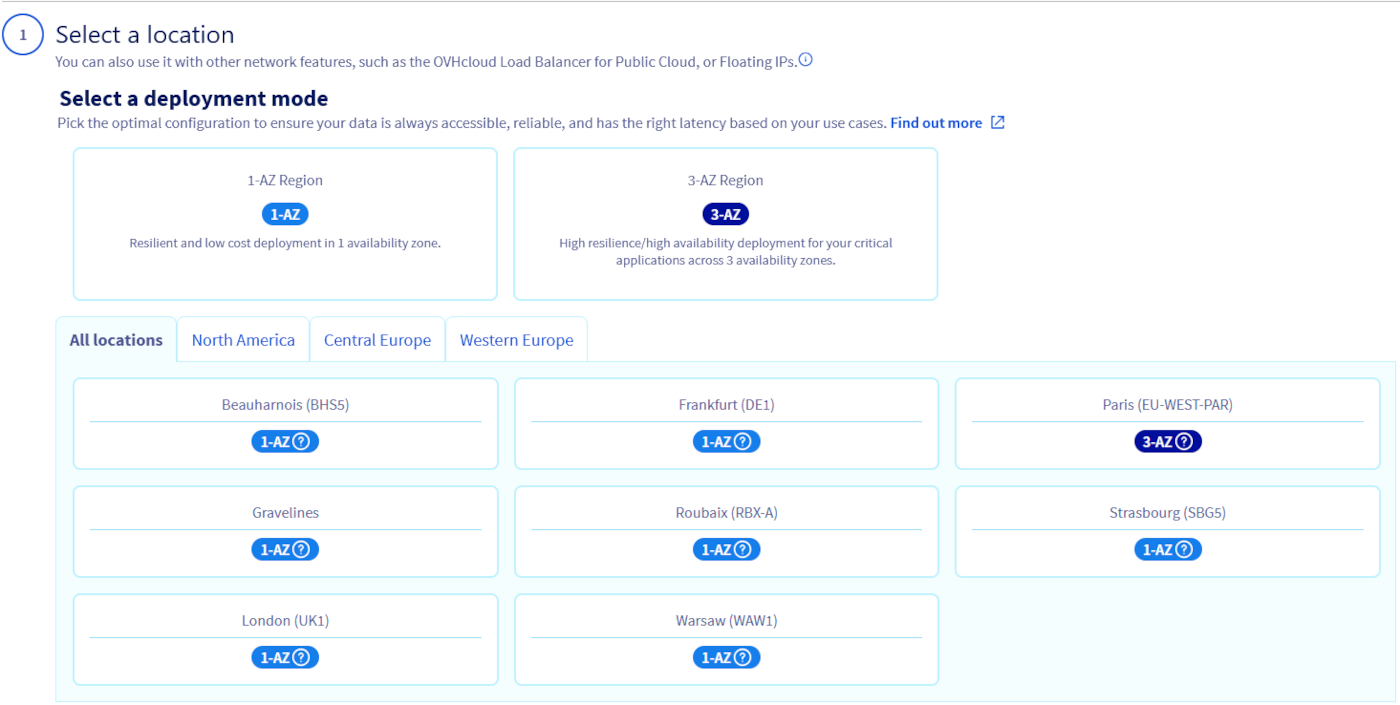 First, select a location. It is best to create a Public Gateway in the region where you intend to deploy your private instances.