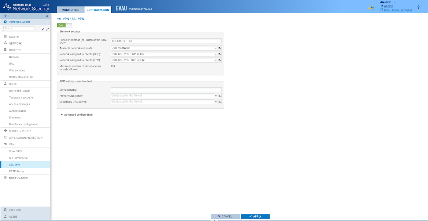 Neste exemplo, utilizamos o cliente OpenVPN, mas pode igualmente utilizar a versão em pacote por Stormshield.