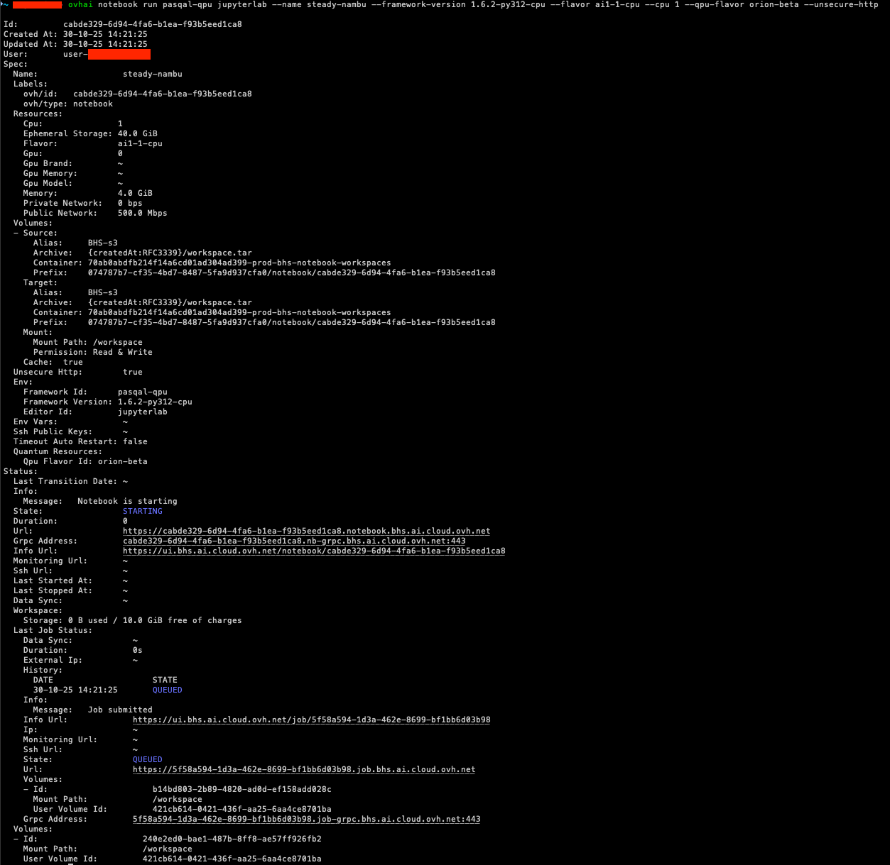 You can also get Notebook information using ovhai notebook get <NOTEBOOK_UUID>.