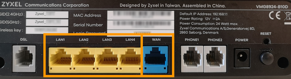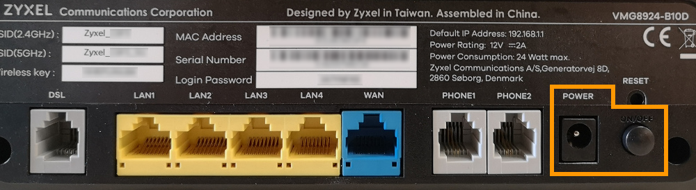 • Pour le modèle VMG8823-B50B, le mot de passe se trouve à côté de « Admin Password ». Le mot de passe par défaut est « 1234 ».