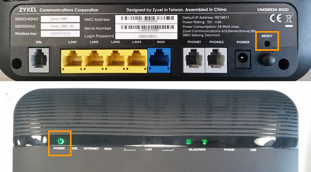 Réinitialiser un modèle Zyxel VMG8924-B10D