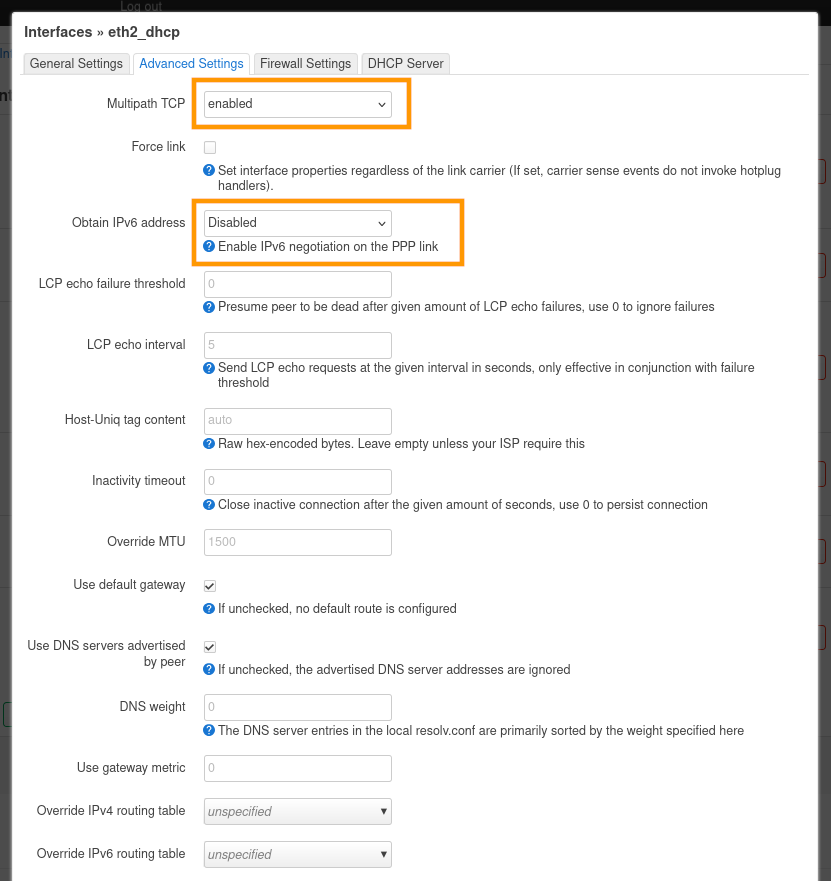 Dans le paramètre Use gateway metric, renseignez un poids, idéalement plus haut que les interfaces physiques, par exemple 38.