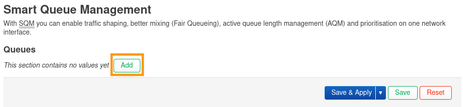 Rendez-vous dans l'onglet Network > SQM QoS.