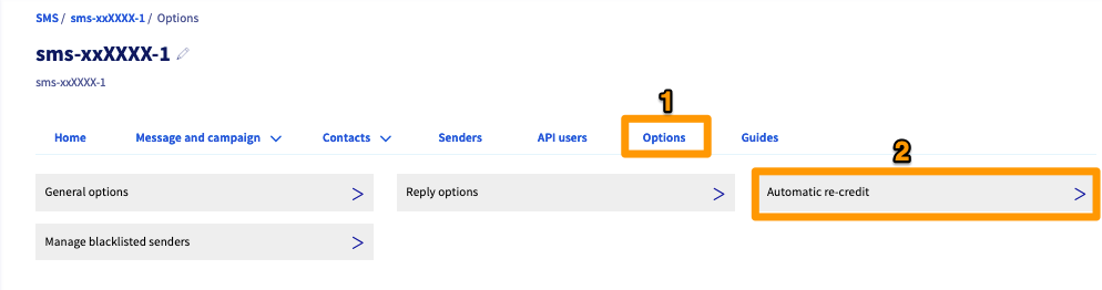 To ensure that you are never short of credit on your account, you can enable automatic re-crediting. Once a minimum threshold of remaining credit has been reached, a new number of credits is automatically added to your SMS account.