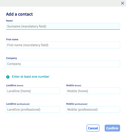 Fill out the fields you need to, and confirm to save your changes. The contact will then be added to your address book. You will need to repeat this process to add more contacts.
