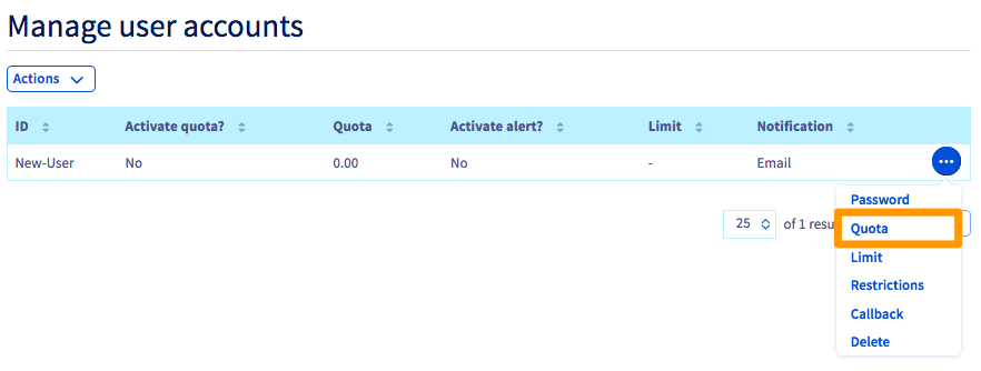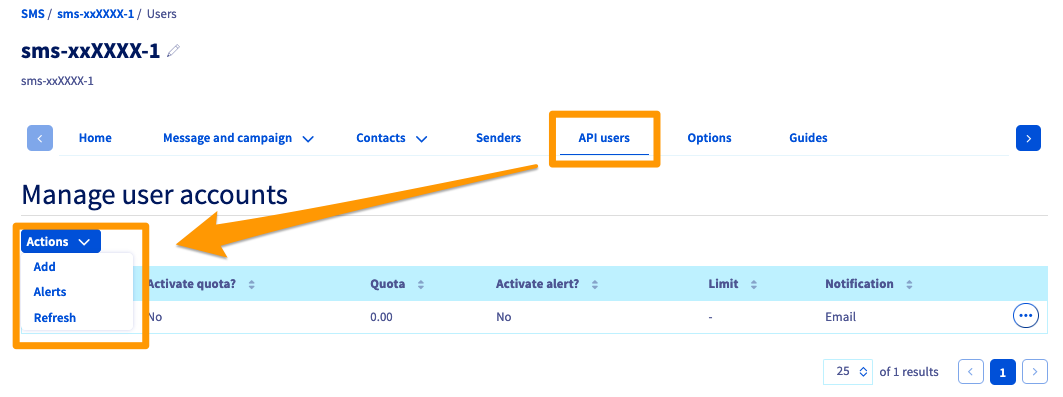 To better manage credit for your SMS accounts, you can set a limit and quota for your API users.