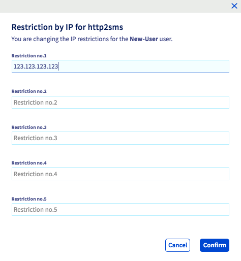 Step 4: Define a restriction by IP for the http2sms feature