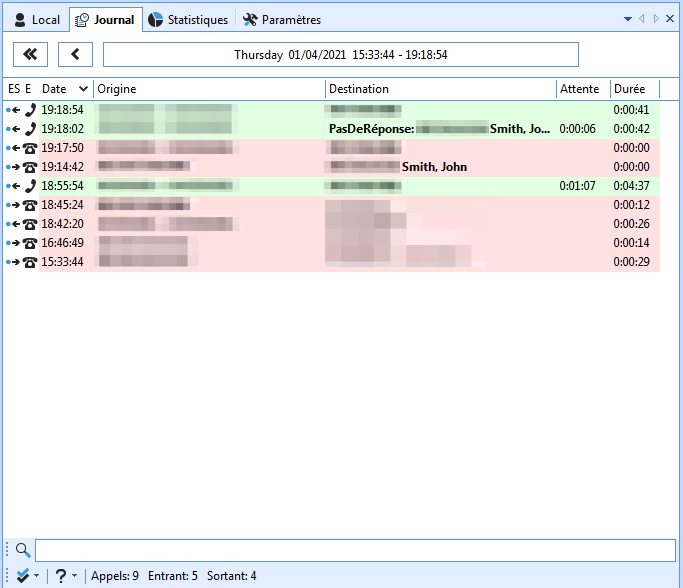 Vous pouvez appeler directement l'un de vos correspondants depuis le journal en faisant un double clic sur l'appel ou un clic droit puis Appeler.