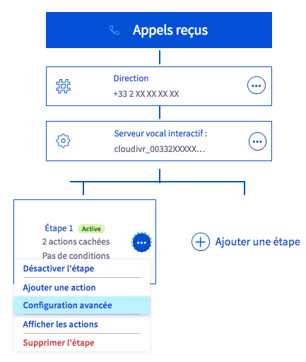 Les actions ajoutées à une étape s'activent lorsqu'un appelant contacte votre numéro.