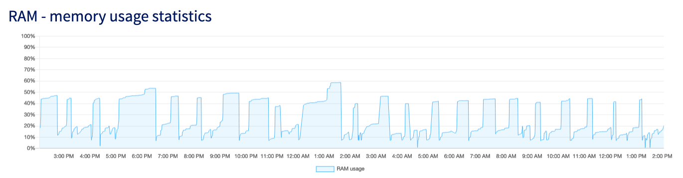 Aceda ao separador Métricas da Área de Cliente. Vai encontrar o gráfico "Estatísticas de memória RAM utilizada".